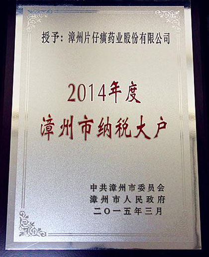 2014年度漳州市纳税大户牌匾