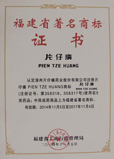 福建省著名商标证书