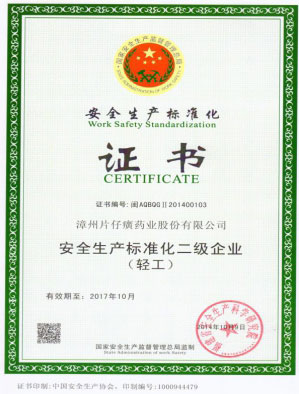 福建省安全生产标准化二级企业(轻工)证书