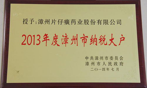 2013年度漳州市纳税大户牌匾