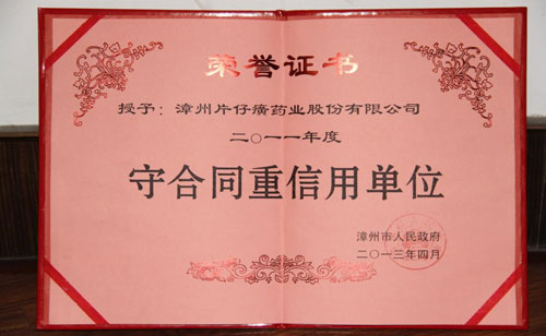 2011年度守合同重信用单位荣誉证书