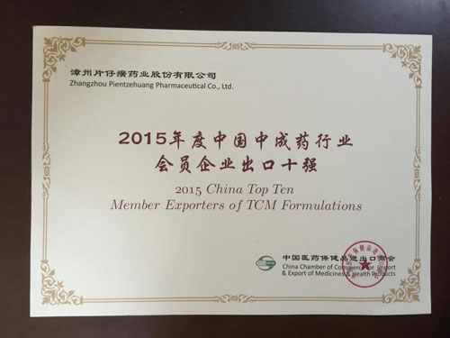 2015年度中国中成药行业会员企业出口十强