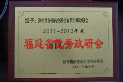 福建省优秀政研会牌匾
